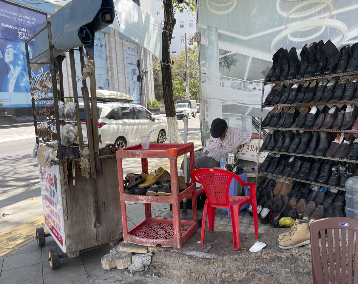 heute habe ich mich dem geschäftigen treiben ein bischen entzogen. es ist schon interessant, dass es so viel bewegung in der stadt gibt, fast keine fussgänger, die meisten menschen auf motorrädern. was machen die nur alle? natürlich kenne ich das auch aus anderen ländern, aber auch da ist es nicht wirklich erklärlich. auf der anderen seite ist auch viel entspanntes nichts-tun zu sehen. auch der schuster muss mal ein nickerchen machen …