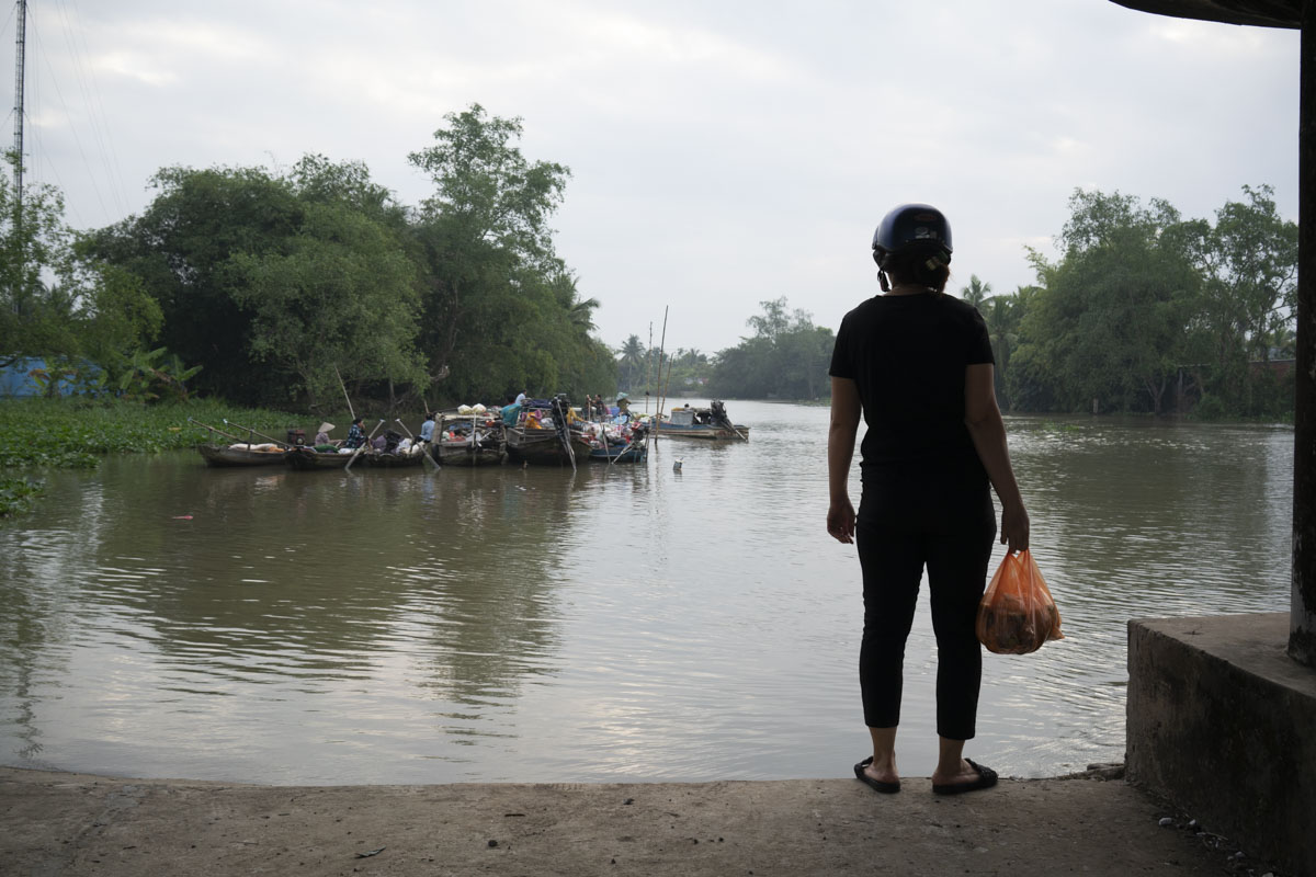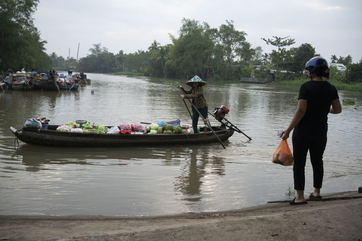 und dann geschah etwas, was ich schon häufiger erlebt habe, wenn ich mich in ruhe einer situation hingegeben habe: es geschieht etwas für mich vollkommen unerwartetes: natürlich bekommen diese verkäufer:innen genauso lust und hunger auf frühstück wie ich. mehr oder weniger aus dem nichts tauchte eine junge frau mit einem beutel auf, in dem sich sichtbar mehrere frühstücke befanden, die den bootsfrauen übergeben wurden. tradition verzichtet natürlich eben auch nicht auf moderne.