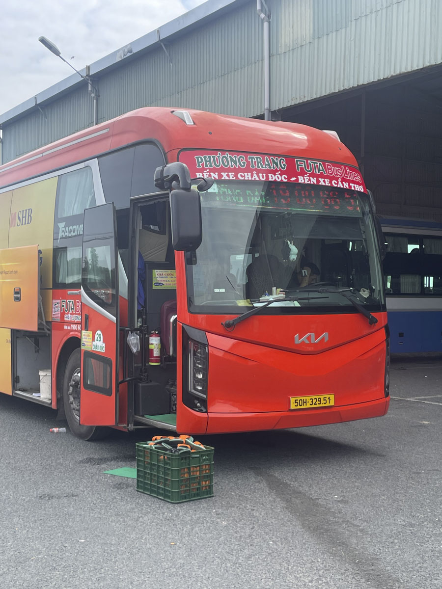 Ja, nach 14 Tagen muss das auch mal sein …. 😊. Heute ist Reisetag, von Muong Dinh nach Chau Doc. Solche Reisetage mache ich immer…