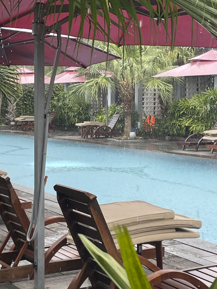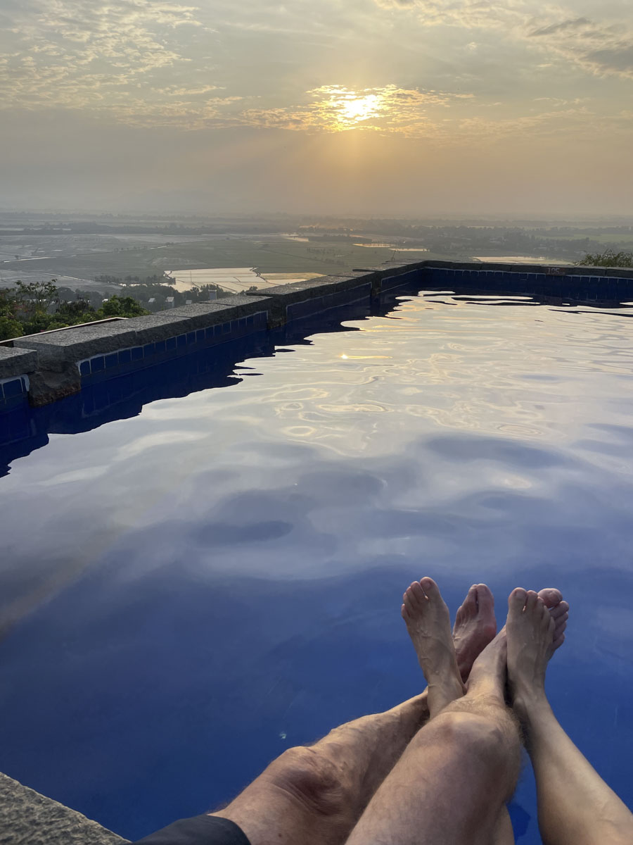 Das Hotel, in dem ich mich erholen konnte, liegt auf einem Berg, man schaut auf die Reisfelder und ist weit weg von dem realen Leben…